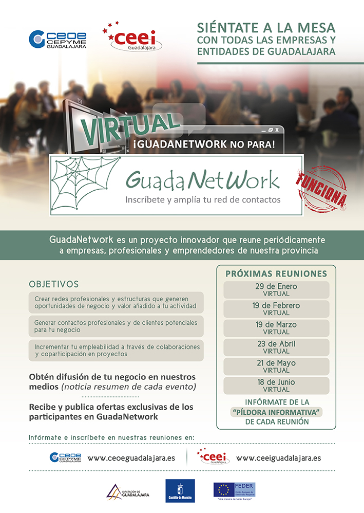 GuadaNetWork prepara seis nuevos encuentros virtuales para el primer semestre de 2021, con el objetivo de seguir acercando empresas